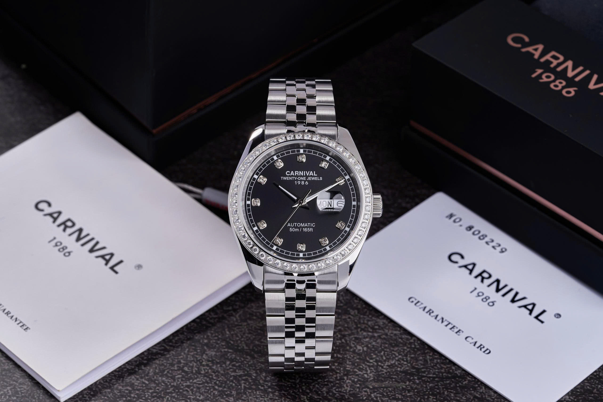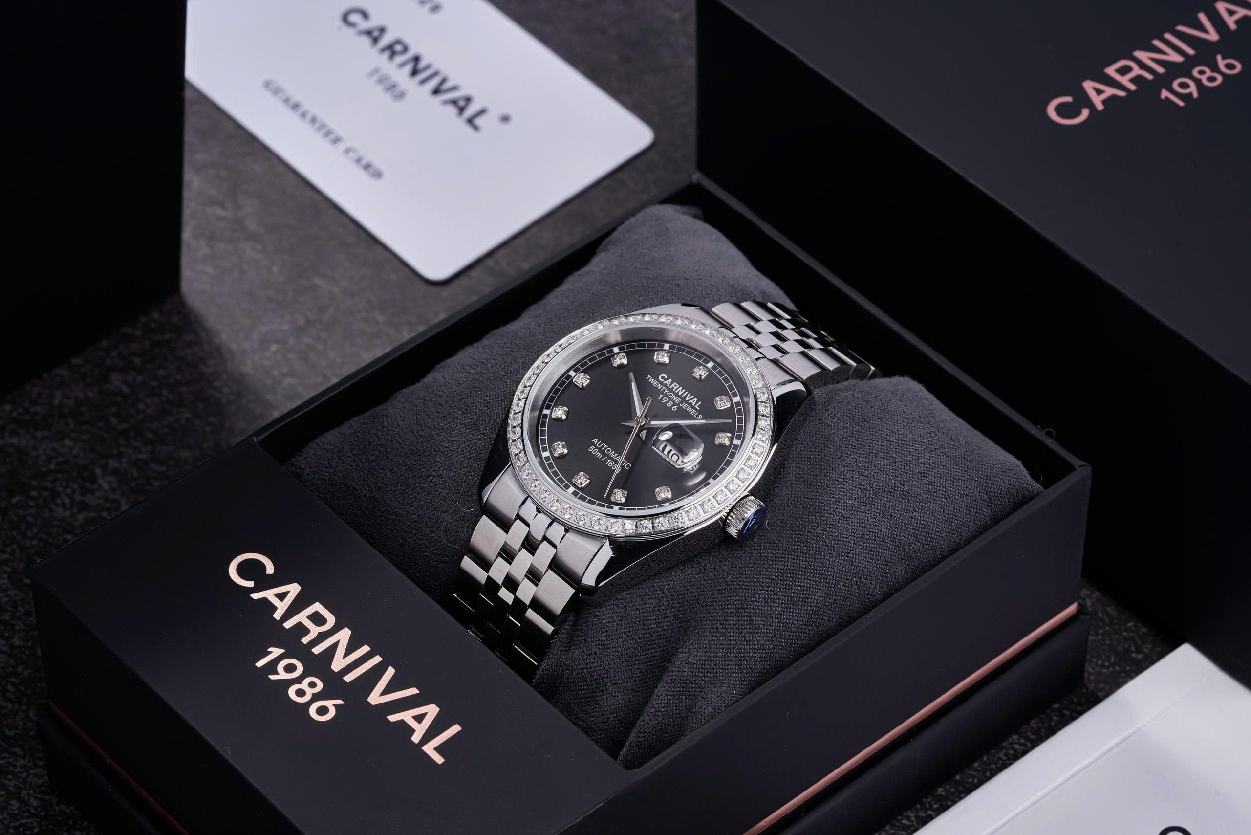 Một ưu điểm lớn của Carnival 8131G2-VT-D là khả năng trữ cót hơn 42 giờ. Điều này có nghĩa là bạn có thể để đồng hồ trong 1–2 ngày không đeo mà máy vẫn hoạt động bình thường – rất tiện lợi cho người bận rộn. Bộ máy cũng hỗ trợ tính năng tự động lên dây cót khi đeo hằng ngày – không cần dùng pin.