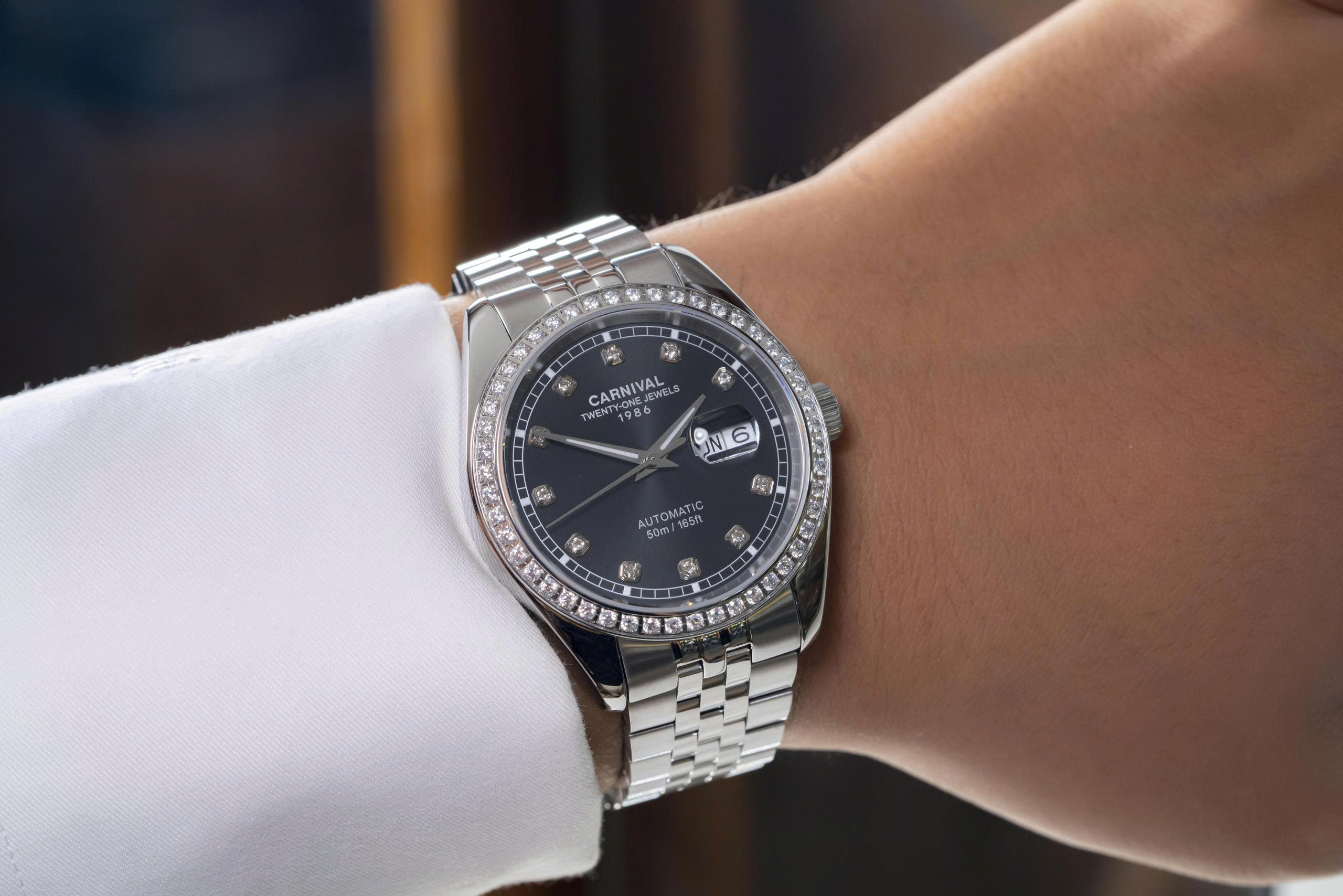 Cảm giác đeo Carnival 8131G2-VT-D vô cùng vừa vặn và chắc chắn, nhờ vào thiết kế ôm cổ tay và chất liệu thép không gỉ mịn màng. Với trọng lượng vừa phải, sản phẩm không gây mỏi khi đeo cả ngày, đồng thời tạo cảm giác cầm nắm đầm tay – đặc trưng của đồng hồ cơ chất lượng.